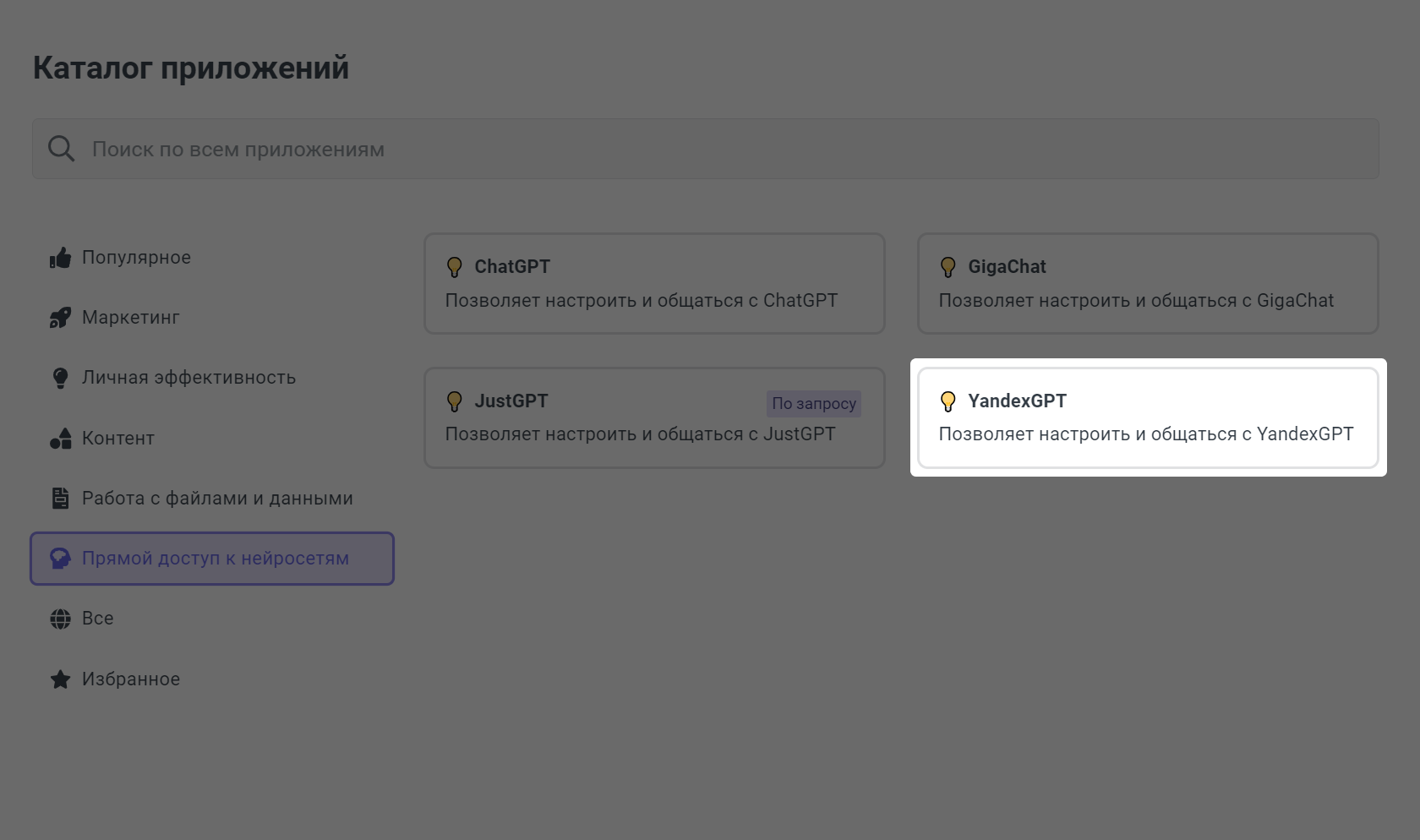 - Приложение для прямого доступа к YandexGPT.