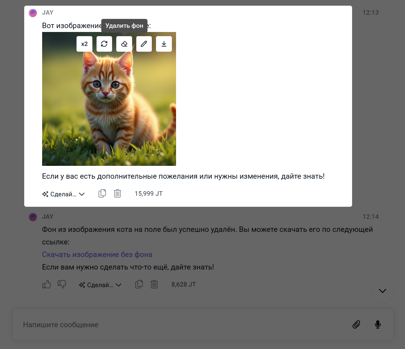 В Ассистенте Jay и приложении «Арт-Ассистент» появилась возможность удаления фона изображений одним кликом. Наведите курсор на изображение и нажмите кнопку Удалить фон:
