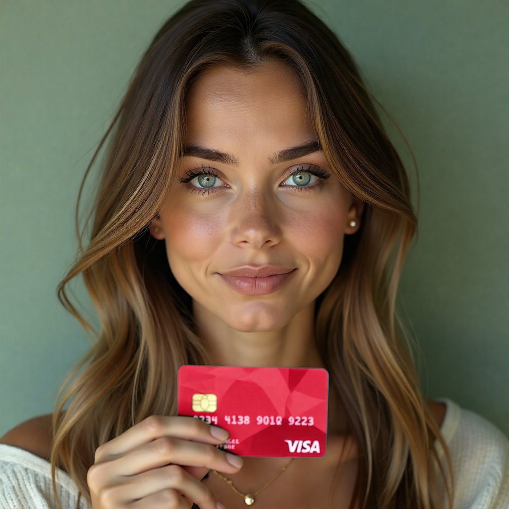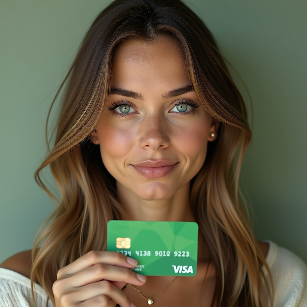 Например, попросим «Арт-Ассистент» создать изображение девушки с зеленой банковской картой.