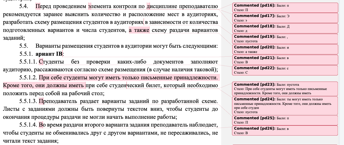 В результате будет создан исправленный DOCX-файл, в котором подсвечены изменения.