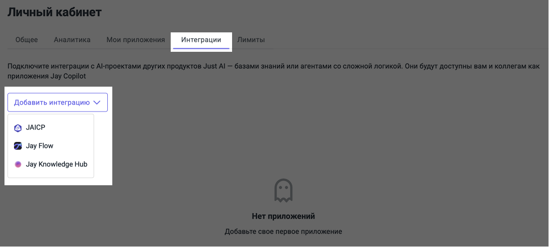 Появилась возможность подключать к Jay Copilot ботов, созданных на платформе JAICP. Это открывает доступ к приложениям с продвинутой логикой, подключением к внешним сервисам и AI-агентам.