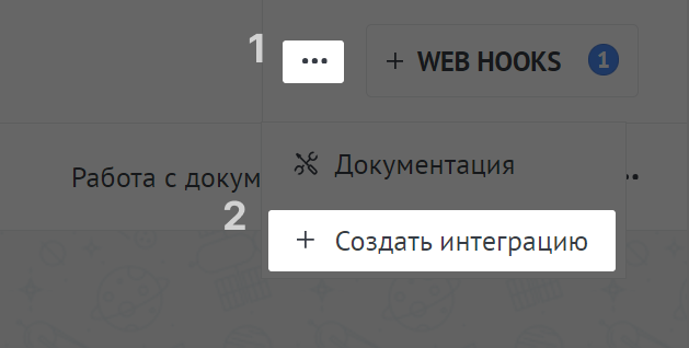 В правом верхнем углу нажмите и выберите Создать интеграцию: