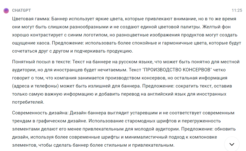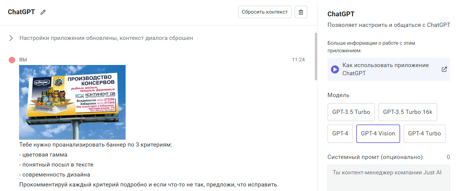 Методом эксперимента Артур решает загрузить фотку рекламы в ChatGPT и спросить, что нейросеть думает о дизайне. Но точно ли она справится с тем, что увидит на картинке?