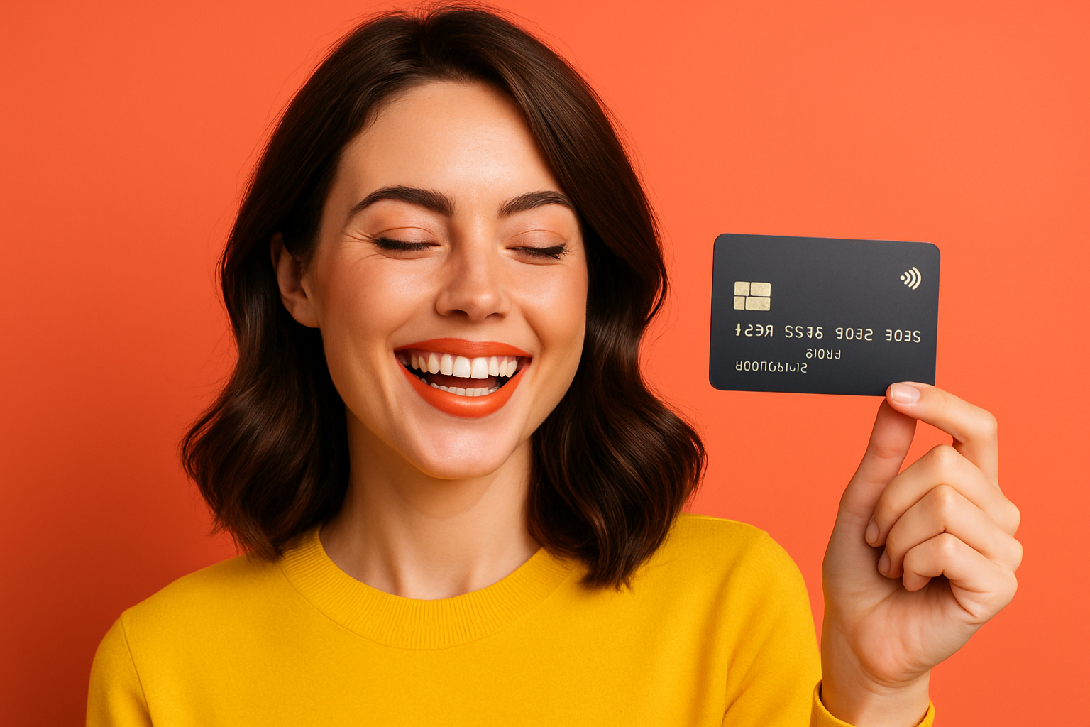 Текст: Откройте новые возможности с нашей новой кредитной картой! Современный дизайн, удобные условия и поддержка 24/7 — всё для вашего комфорта! -