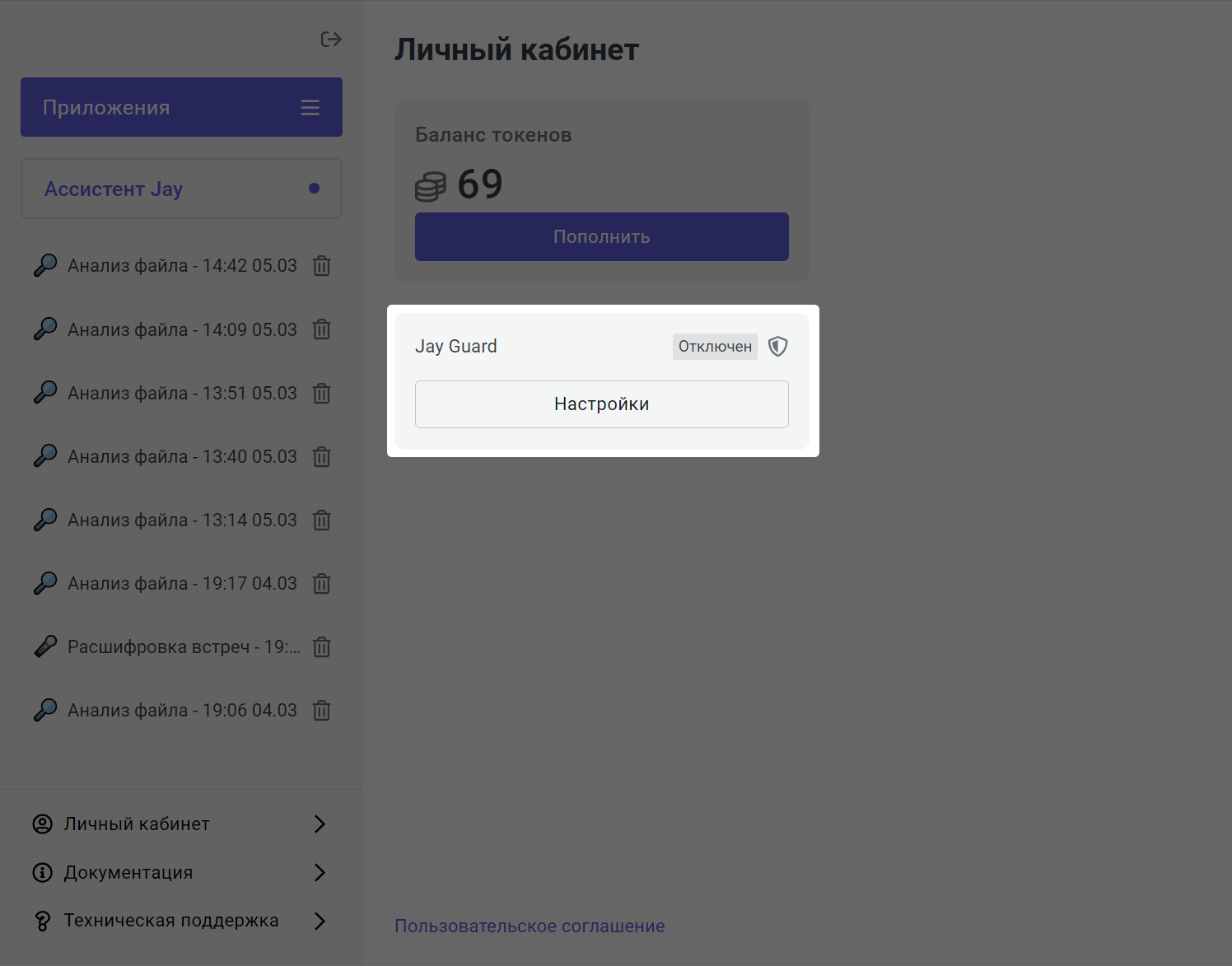 Перейдите в Jay Copilot → Личный кабинет.